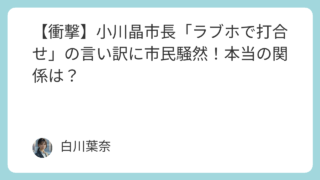 社会問題・詐欺・トラブル系 【衝撃】小川晶市長「ラブホで打合せ」の言い訳に市民騒然!本当の関係は? 小川晶市長と市役所幹部が2ヶ月間で9回にわたりラブホテルを利用していたという報道が、市民に衝撃を与えています。特に注目されているのは、2人がその行動を「打合せだった」と釈明している点です。SNSなどで批判の声が広がる中、本記事では釈明内容の... 2025.09.25 社会問題・詐欺・トラブル系