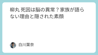 話題・ニュース 柳丸 死因は脳の異常?家族が語らない理由と隠された素顔 SNSフォロワー66万人を誇る人気コスプレイヤー・柳丸さんの突然の訃報。ファンの間では深い悲しみと共に、「なぜ亡くなったのか?」「本名や家族は?」という疑問が相次いでいます。彼女は生前、耳の不調や全身の震え、脳の異常を繰り返し訴えていました... 2025.09.27 話題・ニュース
