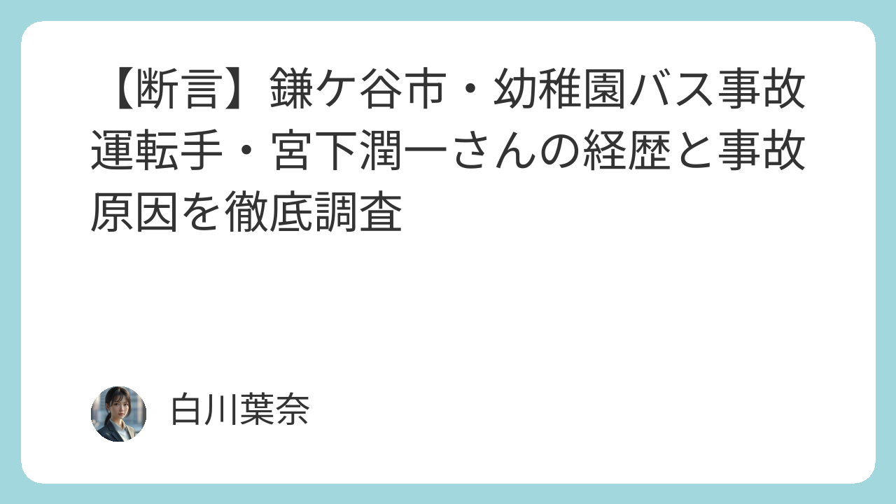 宮下潤一さんは49歳の男性で、報道によればこの日が代務での運転だった可能性も指摘されています。常勤ではなく、代替要員での勤務だった場合、園児のルートや車両に不慣れだった可能性も考えられます。