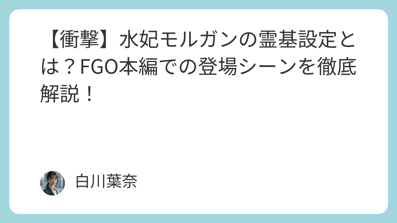 「水妃モルガンって誰?」「FGO本編に登場するの?」──そんな疑問に、この記事でお答えします。