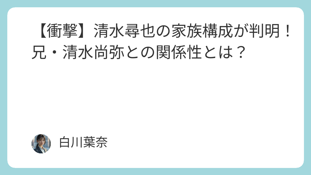 このニュースが大きく拡散された背景には、彼のキャリアだけでなく、兄で同じく俳優の清水尚弥の存在があります。