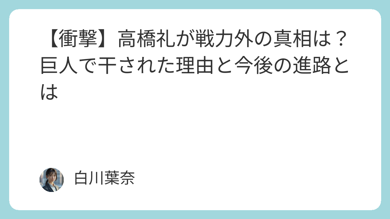 高橋礼が巨人で戦力外となった理由は、「数字としての成果不足」と「球団編成方針による不一致」の両方にありました。