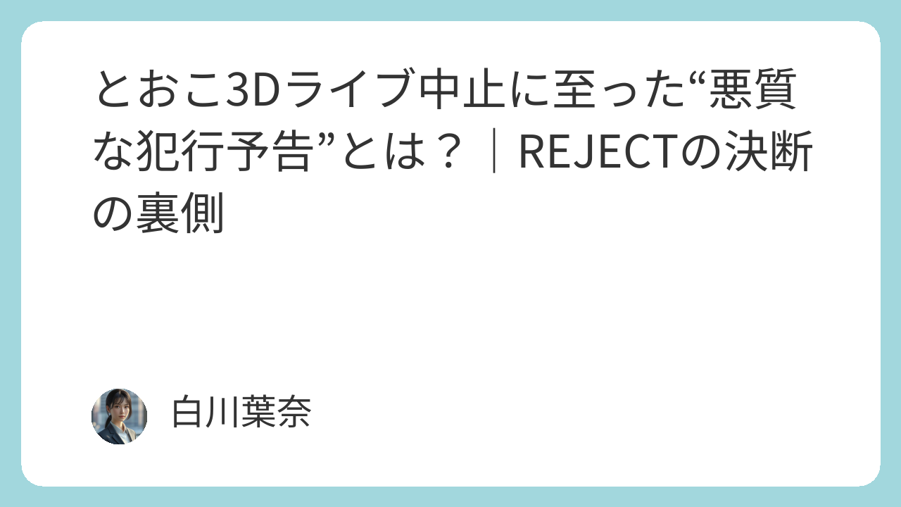 この記事では、この犯行予告が具体的にどう危険視されたのか、REJECTがなぜ中止に踏み切ったのか、そしてVTuberイベントにおける安全管理の課題と今後の方向性について、深掘りしてお伝えします。